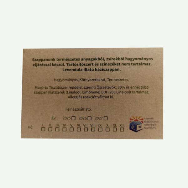 Termék összetétel: Háziszappan, szárított levendula virág, 100% levendula olaj.